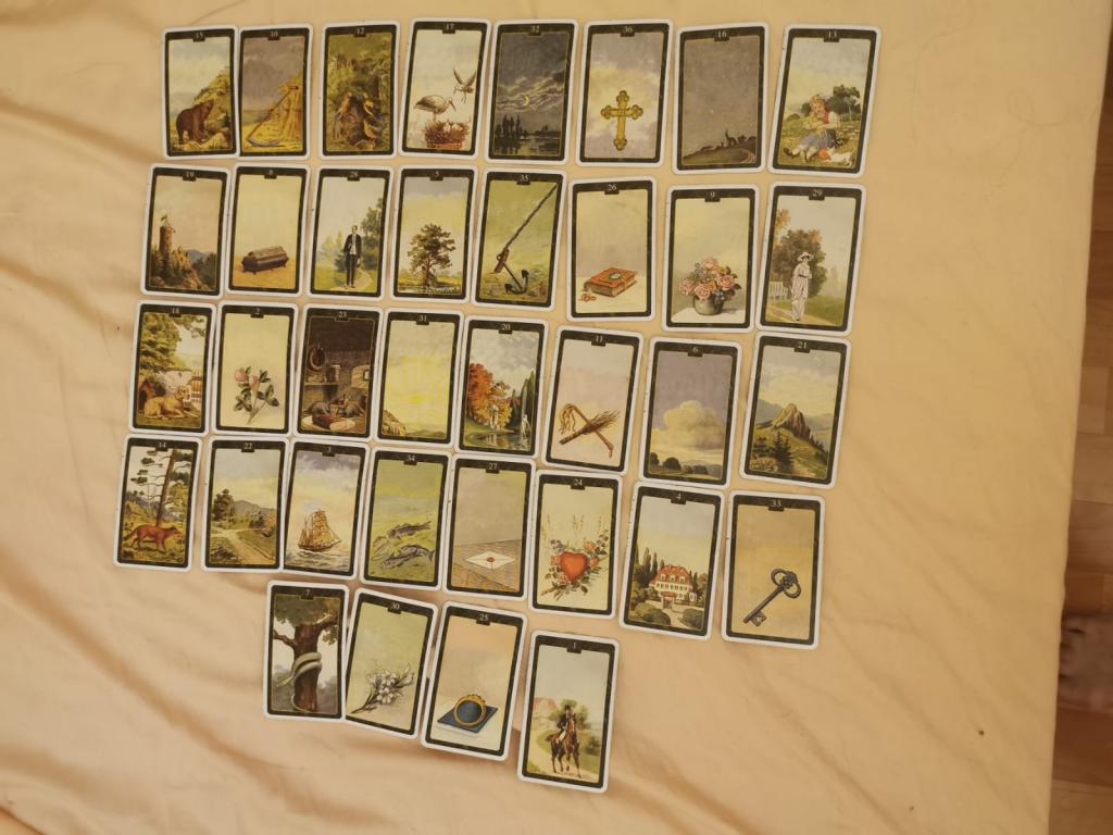 Себя загадала дамой, работу-якорь, подругу-собакой, прошлое слева, будущее справа. Будет Ос в конце месяца.