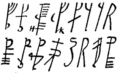 ég risti þér 8 ása, 9 nauðir, 13 þursa. Springa skaltu til stórra nauða, banna ég þínum bakhluta sundur að ganga: Rhllgy (Skíttu) nú eða springdu."